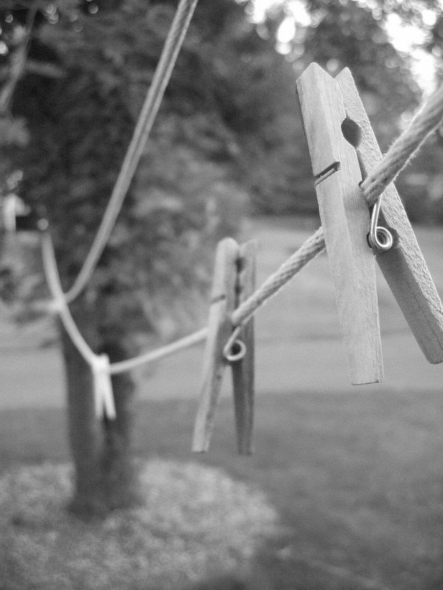 During the good weather, sunshine and warm breezes would quickly dry the sheets, pillow cases, towels, diapers, shirts, pants, dresses, and underwear that hung ten feet above our backyard. If an unexpected rain storm came through, Mom would have to quickly pull everything off the line and hang them over available chairs and radiators to finish the process. During the long winter months, cold air poured into the unheated room as Mom, fingers red and raw, pinned the laundry to the line with the wooden pins. If the snow was too frequent, she resorted to hanging the laundry in the basement.
