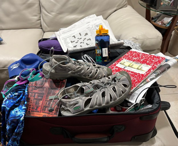 Full disclosure: I don’t even leave my house for a few hours without packing enough for an overnight stay. Along with my essentials—wallet, iPhone, sunglasses, lipstick—I need to cover all my bases. A book. My notebook and a pen in case I get hit with a writing inspiration. A phone charger. A sweater or fleece in case I get cold. Shorts in case I get hot. My water bottle. A Quest bar in case I get hungry. I stuff more into my oversized handbag for a simple errand than the Israelites grabbed in the middle of the night.