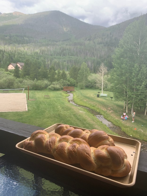 Meanwhile, as has happened throughout the country, this very contagious COVID variant hit Summit County hard—and close to home. On July 1, the day we moved into our rental, we stocked up on groceries at City Market, along with many other maskless vacationers. We brought home chicken, produce, ingredients for challah baking, and COVID. By July 3, Larry was feeling under the weather; by July 5, he tested positive.
